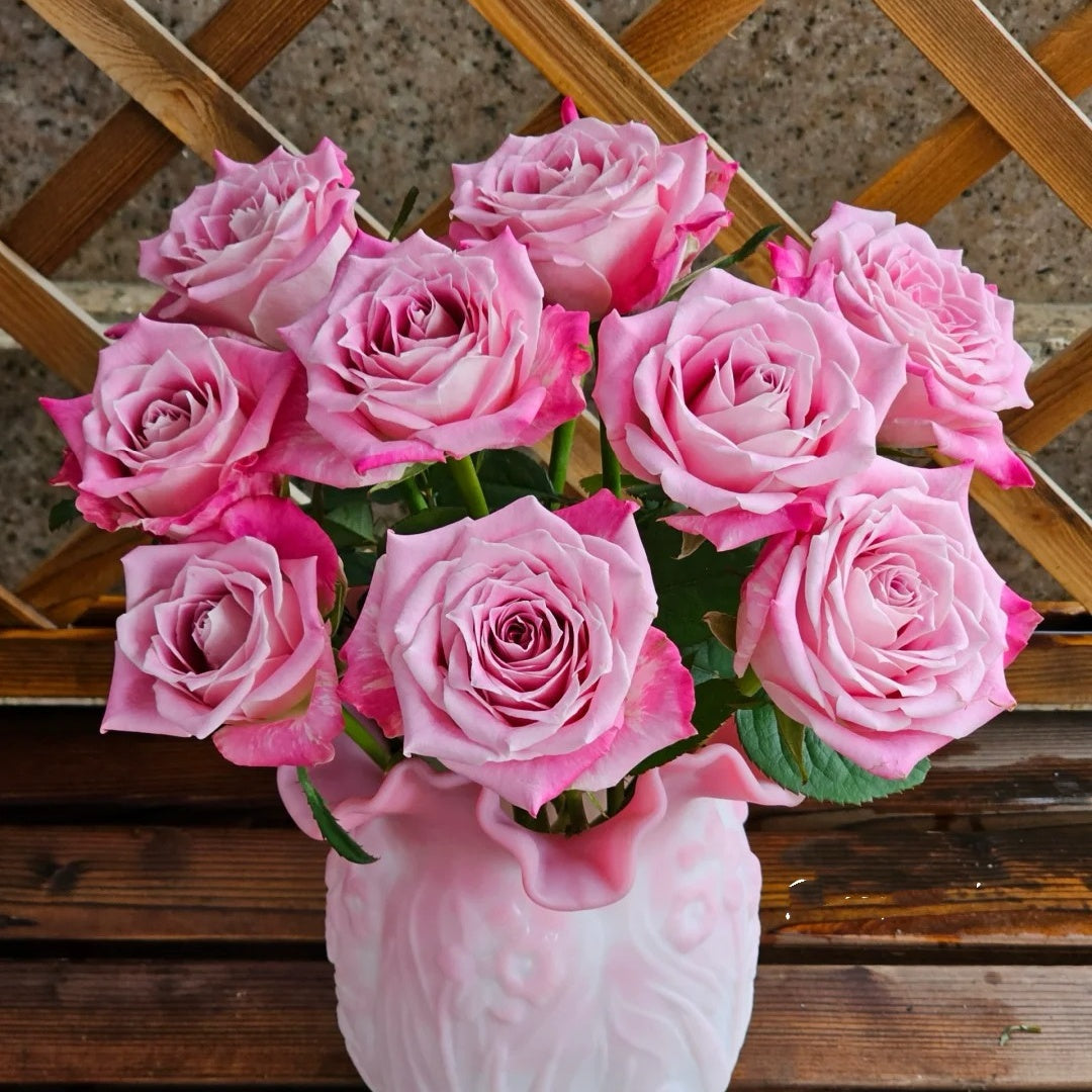 Characteristics: The outer petals are slightly darker in color, presenting a gentle and layered pink hue. The flower shape is cup-shaped, with a unique rolled edge effect on the edges. The overall flower shape is full and has an elegant retro charm. The petals are thick and have a rich texture, with a jade-like warm touch. The fragrance is light. The vase life is about 10 days. The plant is upright, with general branching, few thorns, dark green leathery leaves, and medium overall resistance. "Pinkish-green glaze" is a classic glaze color in traditional Chinese porcelain, known for its light pinkish-green hue and jade-like texture.